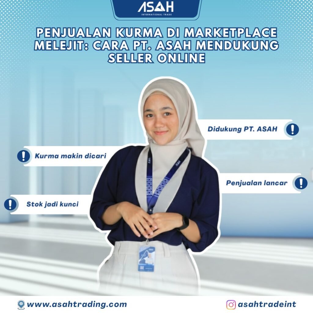 Penjualan kurma pada marketplace berkembang sangat cepat. Karena itu, pemenang pasar bukan hanya yang memberi harga murah, namun yang menjaga kepuasan pelanggan konsisten. PT. ASAH International Trade hadir sebagai partner utama seller online dalam perjalanan tumbuh berkelanjutan menuju sukses.